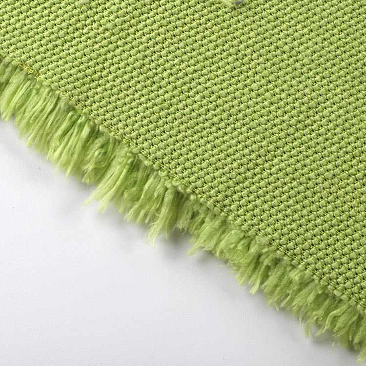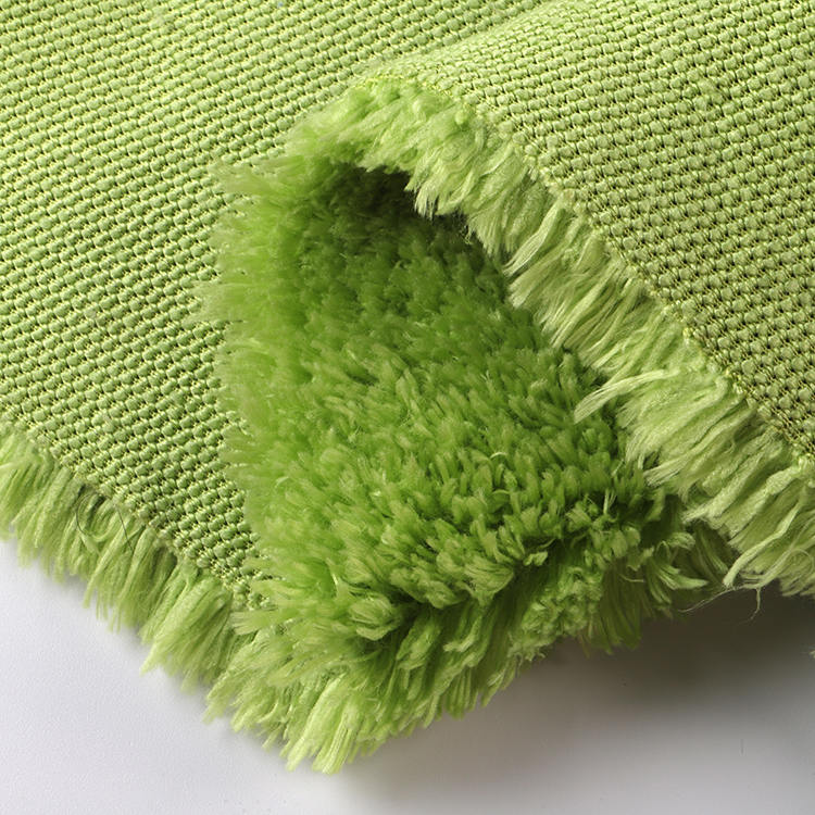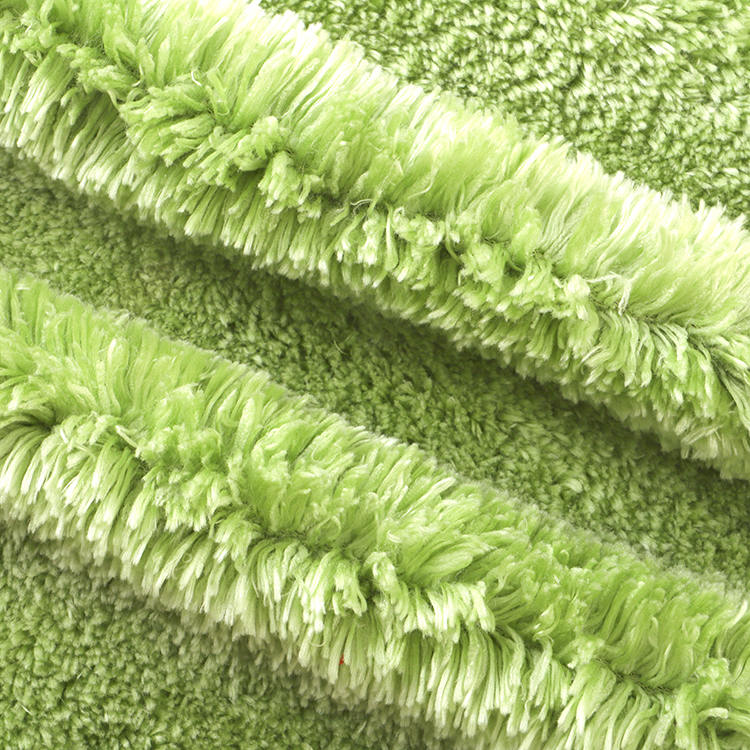 Ideell for en rekke applikasjoner inkludert tepper, tepper og badematter, og stoffet vårt er farget i solide farger som forblir livlige og falmebestandig over tid, og sikrer varig skjønnhet i ethvert miljø. Med en minimum bestillingsmengde på 500 kg per farge, imøtekommer vi både storskala produksjonskrav og skreddersydde prosjekter med letthet.