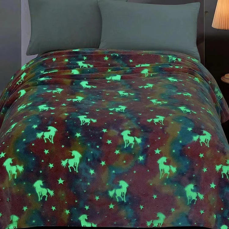Det som virkelig skiller vår lysende flanellfleece teppestoff fra hverandre, er dets unike lysende trekk. Dette stoffet lyser forsiktig i mørket, og skaper en subtil og fortryllende atmosfære i ethvert rom. Det er perfekt for å skape en koselig og innbydende atmosfære, enten det brukes i et soverom, stue eller bad.