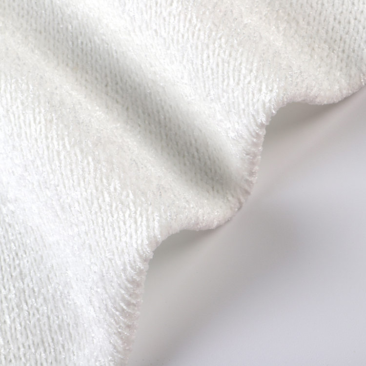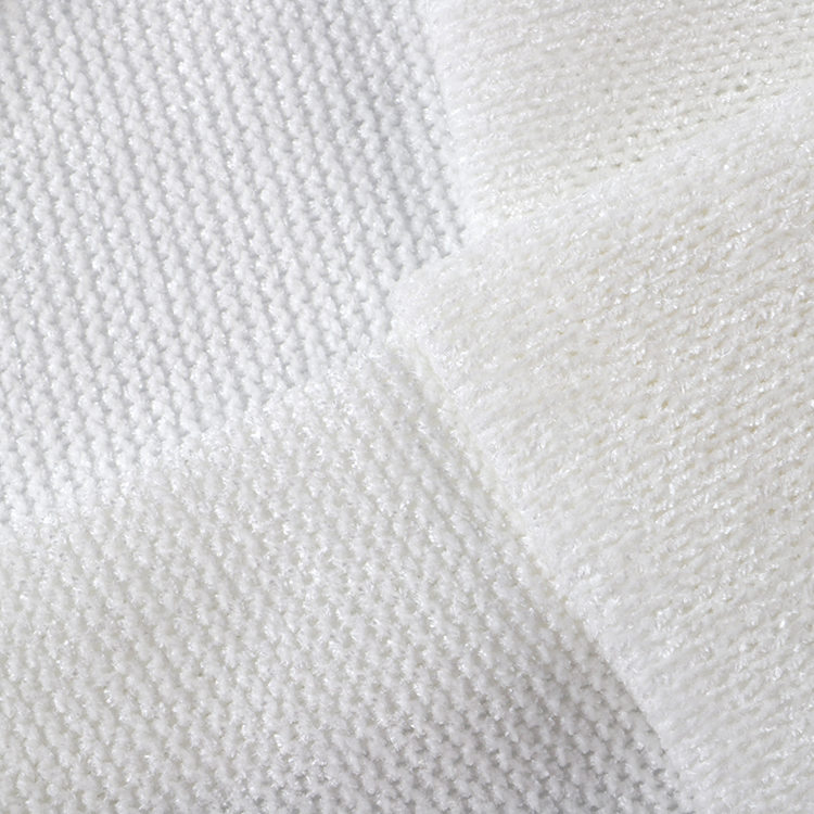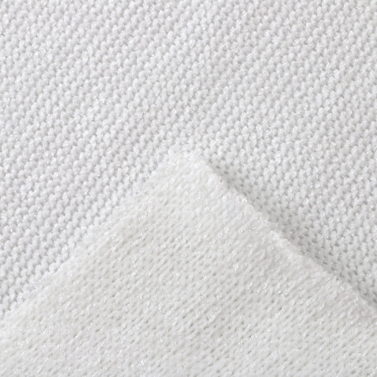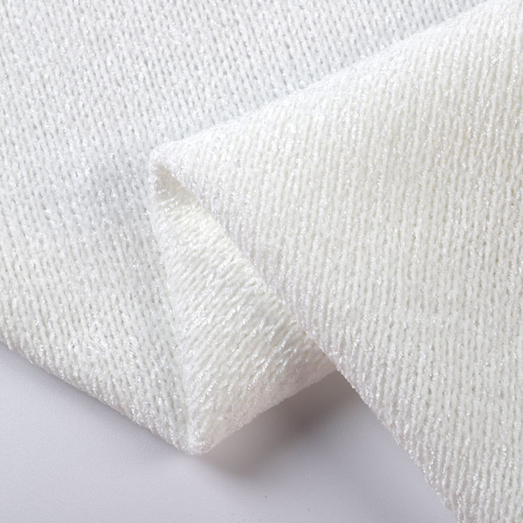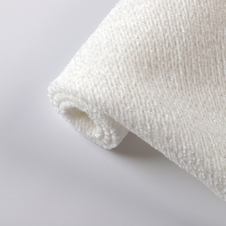 Vårt glatte nett Chenille -stoff kommer i en uberørt PFP -hvit farge, og gir et rent og sofistikert utseende til produktene dine. Med en minimum bestillingsmengde på 500 kg per farge, imøtekommer vi storskala produksjonsbehov effektivt. Stoffet er pakket av ruller, og letter enkel håndtering og lagring.