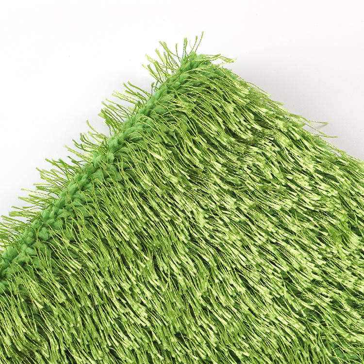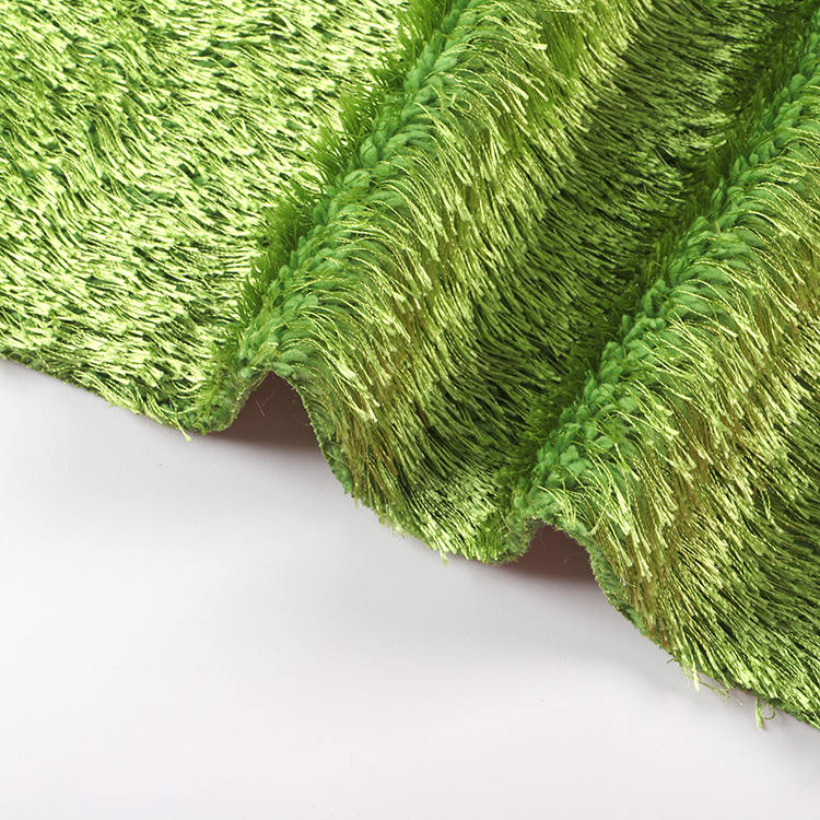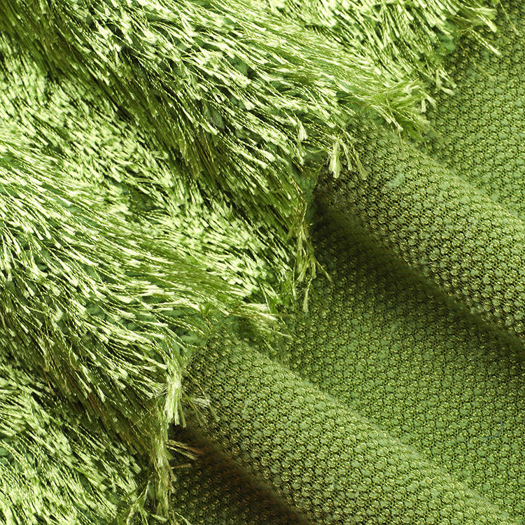 Våre stoffstoff er laget av premium 100% polyester, og har en betydelig vekt på 400 gsm, og sikrer både spenst og en luksuriøs tekstur. Den har en sjenerøs haughøyde på 15 mm, og gir en frodig og raggete overflate som inviterer berøring og gir eksepsjonell komfort under føttene.