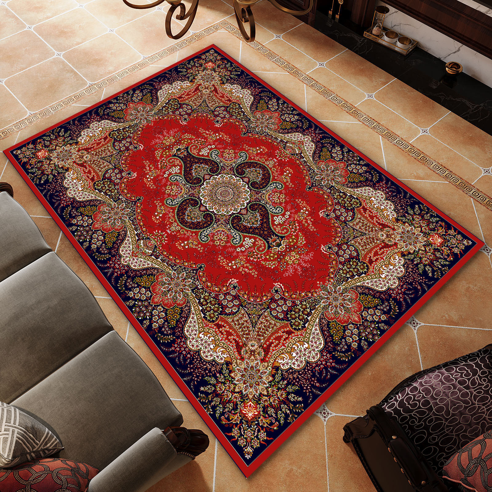Oppdag den utsøkte komforten og tidløse elegansen til vår diamant fløyelsbønnematte. Denne matten er laget av polyester av høy kvalitet med en luksuriøs 800 gsm vekt, og er designet for å løfte ethvert rom med sin plysj-tekstur og persisk/muslimsk mønster. Tilgjengelig i størrelser fra 70*110 cm til 200*300cm, eller tilpasses for å passe til spesifikke behov, og gir allsidighet for forskjellige innendørs og utendørs innstillinger.